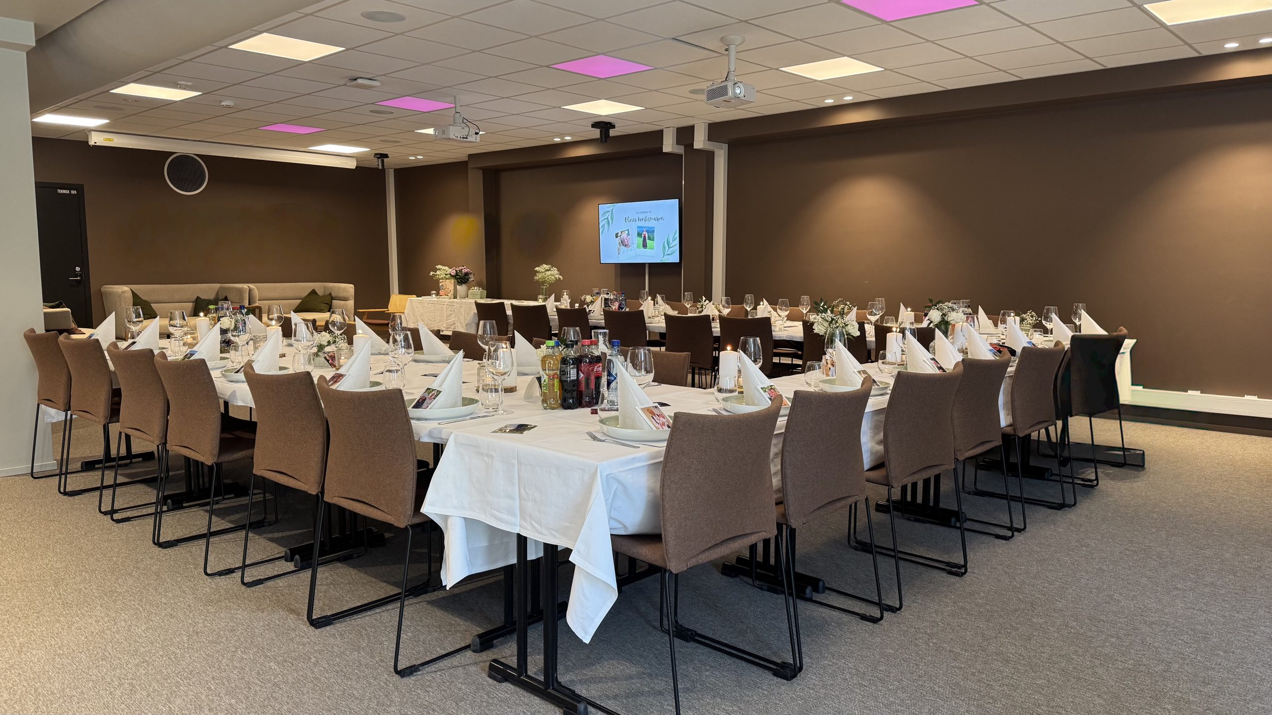 Horisont er vårt største selskapslokale, og kan dekkes for opptil 120 personer. Lokalet kan deles opp og passer derfor like godt til små grupper som til større selskaper og arrangementer. Moderne innredning og rolige farger skaper en innbydende atmosfære, uansett om dere er 20 eller 120 gjester.